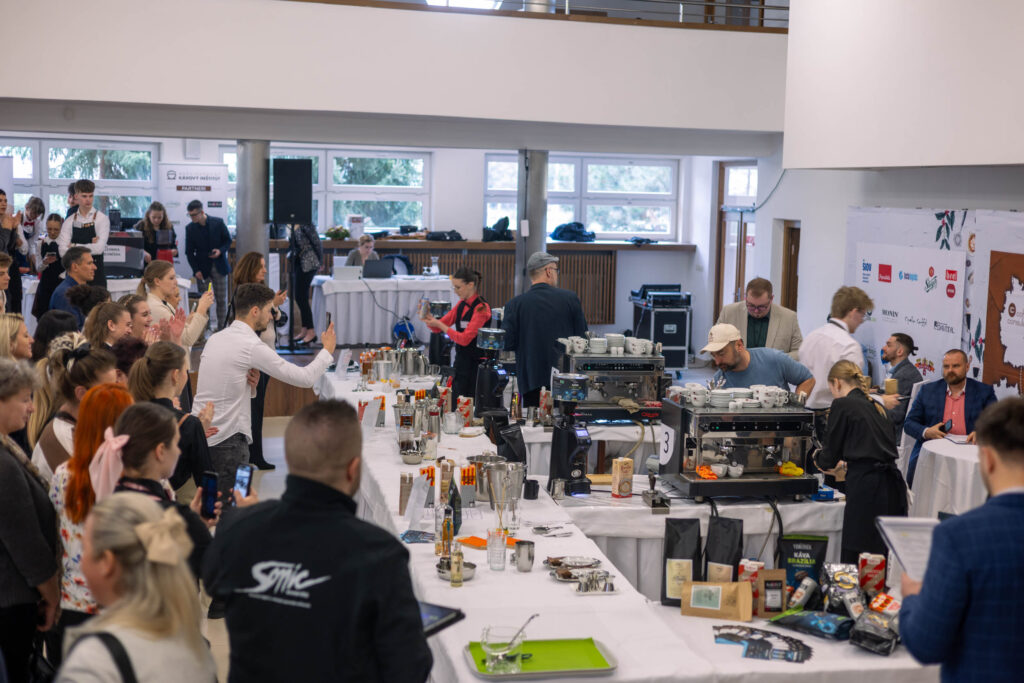Sledovať študentov pri práci bol pre nás- organizátorov, aj pre odbornú porotu nesmierny zážitok. Hoci na mnohých bola v úvode badateľná prirodzená tréma, akonáhle sa dotkli páky kávovaru a spustili mlynček, premenili sa na sebavedomých profesionálov.